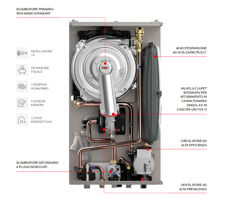 Scambiatore primario 100% Made in Radiant: progettato per garantire una resa termica ottimale e una durata eccezionale.